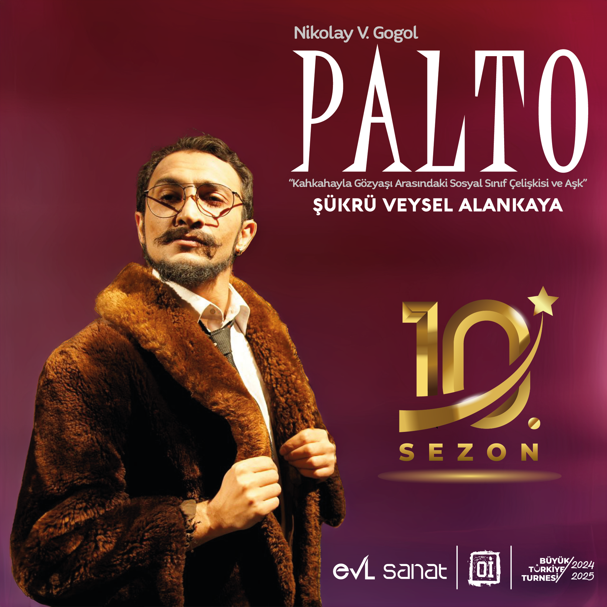 “Kahkahayla Gözyaşı Arasındaki Sosyal Sınıf Çelişkisi ve Aşk” alt başlıklı oyun, Nikolay V. Gogol’ün “Palto” öyküsünden oyunlaştırılmıştır. Yaşadığı dönemin Rusya’sının soğuğunu, kötülüklerini, çarpıklıklarını, gülünç durumlarını sergileyen Gogol’ün, olanca özverisiyle edindiği paltosunu çaldıran küçük bir memurun (Akakiy Akakiyeviç’in) üzüntüden ölmesini anlatan “Palto”su...
